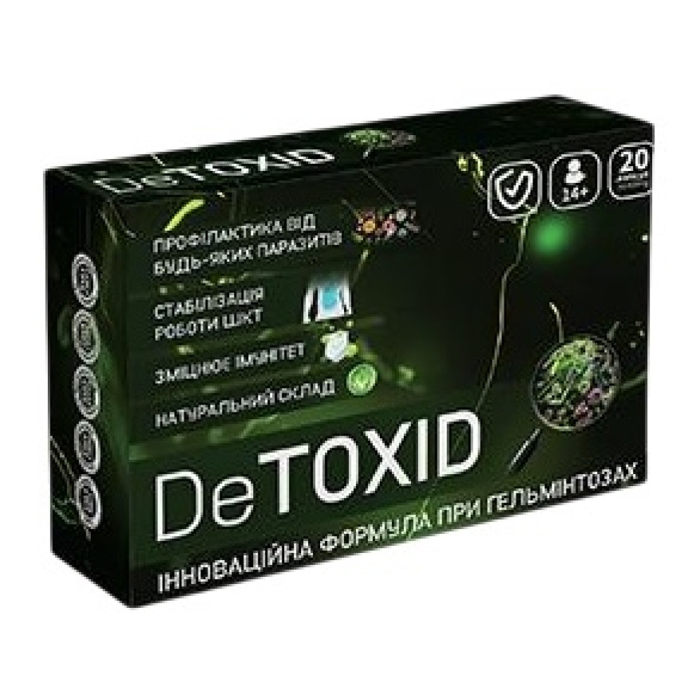 DeToxid — це не просто протипаразитарний засіб, а справжній "детокс-додаток" для вашого організму. Він працює за принципом "три на одному" — знешкоджує паразитів, очищує кишечник і підтримує імунітет.